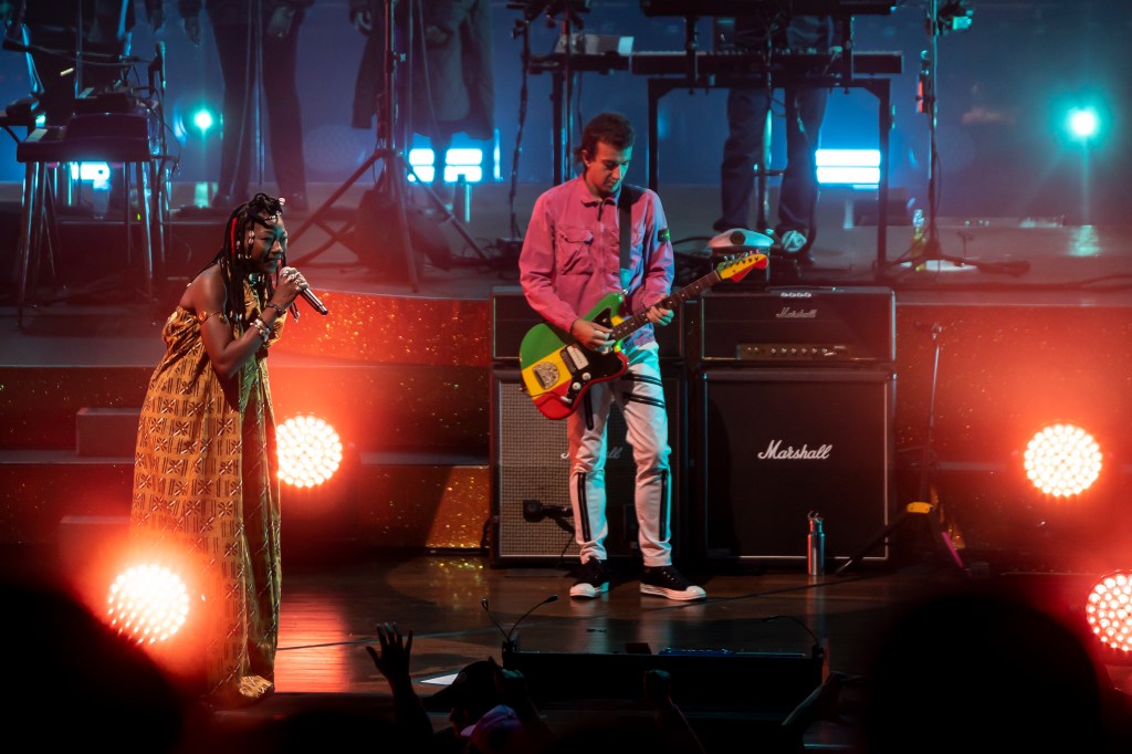 As if the large band with three drummers, five background singers, two guitarists and lead singer Damon Alban was not enough, the Gorillaz even invited some featured artists from specific songs onto stage with them. This included opener EARTHGANG, Michelle Ndegwa, Fatoumata Diawara, Del The Funky Homosapien and more.