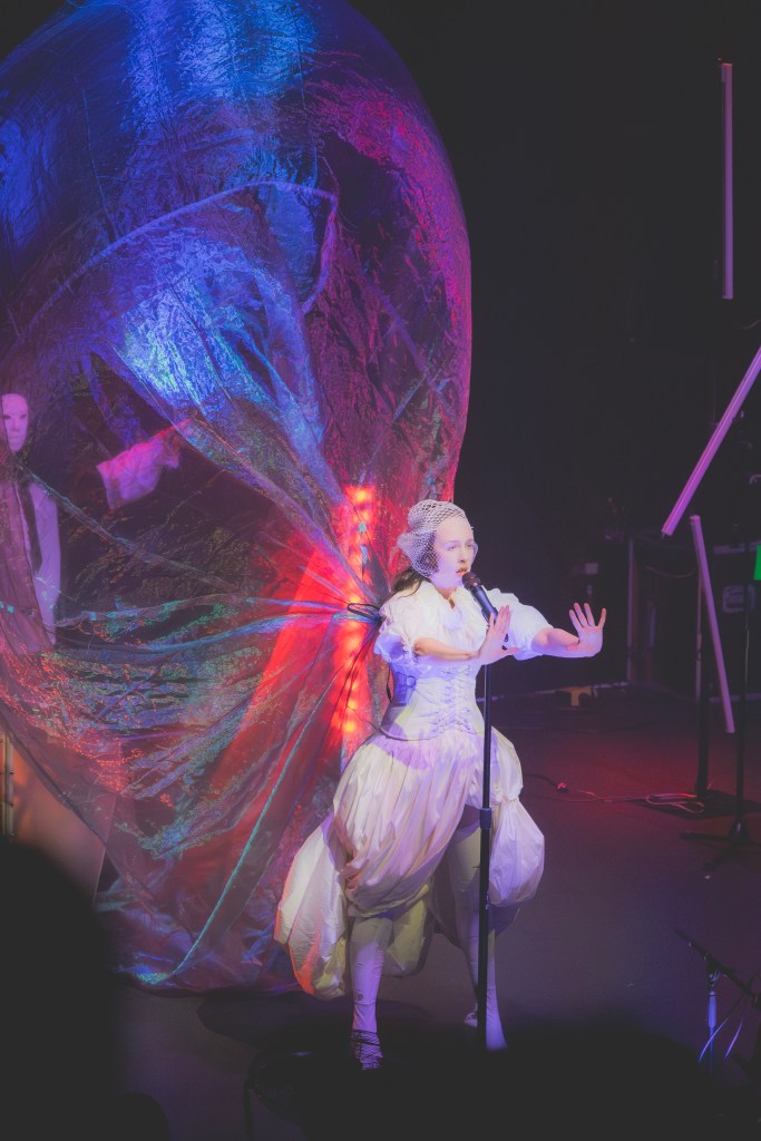 Allie X then went straight into “Off with Her Tits,” speaking to the gender dysphoria of having breasts. During ‘Bon Voyage,’ she had a holographic and sheer fabric fly behind her, creating a stunning reflection of colors. It simulated a sense of flying in the air or floating in water. Her artistic vision shined throughout the entire show, each song colored to reflect off her white outfit, embodying the emotion of the song. Truly a vivid masterpiece of visual and auditory art.